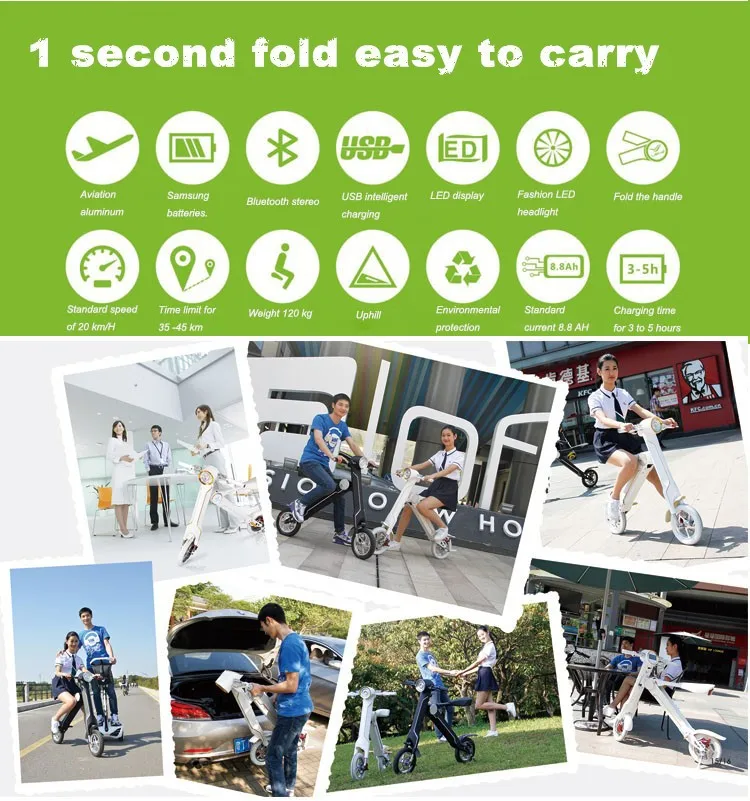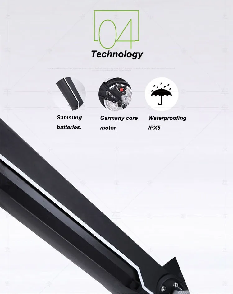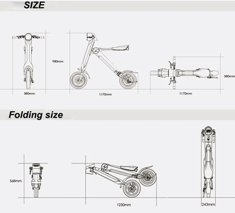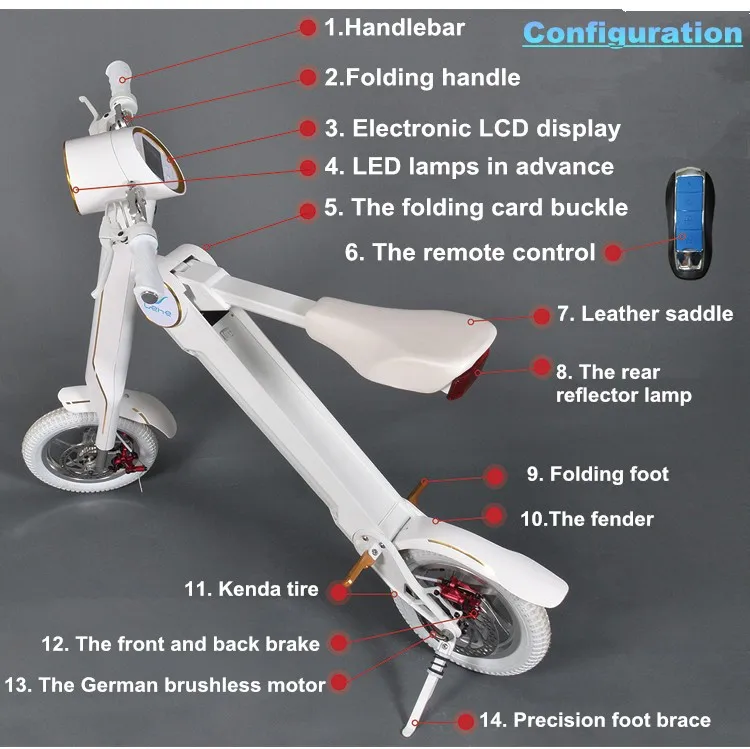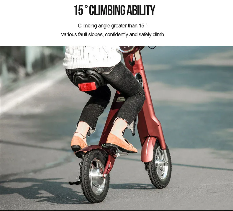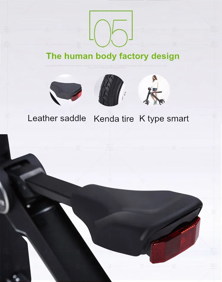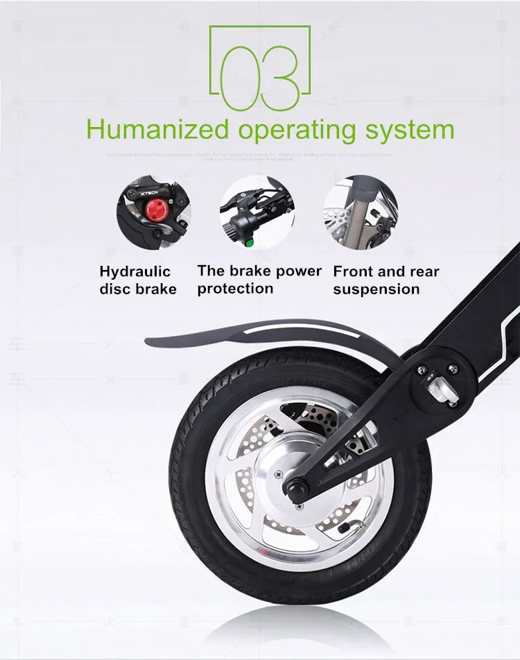 2. The folding handle (innovative card buckle folding design, can the model transverse size decreases, and reduce the occupied space, and to ensure safety, ensure optimal riding feeling)