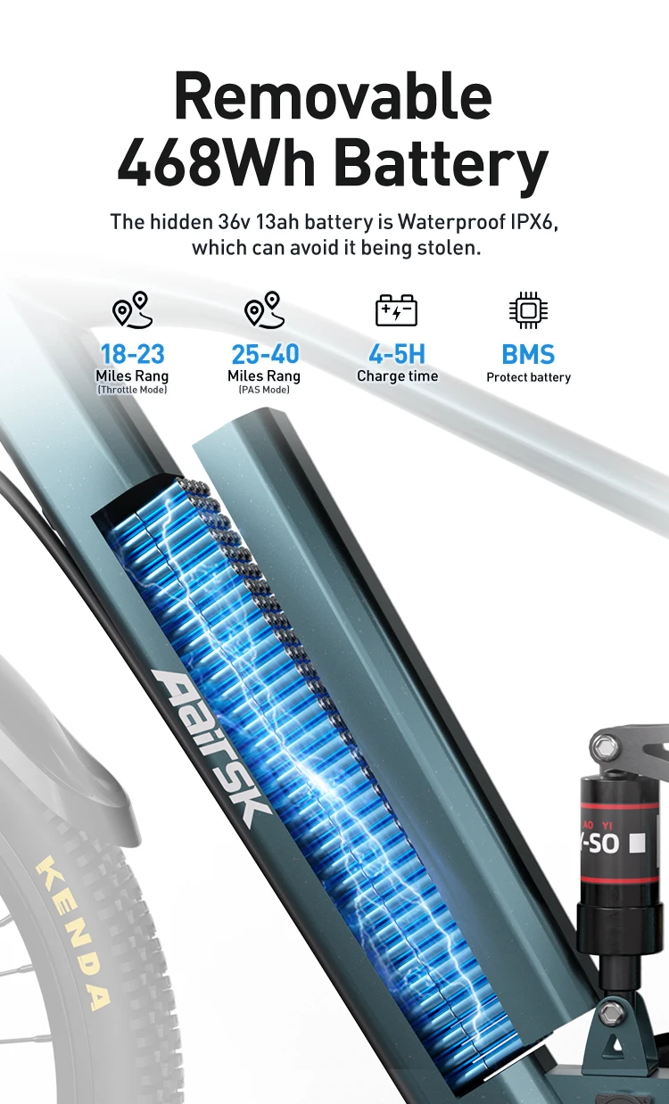 18-23 Miles Rang (Throttle Mode); 25-40 Miles Rang (PAS Mode)