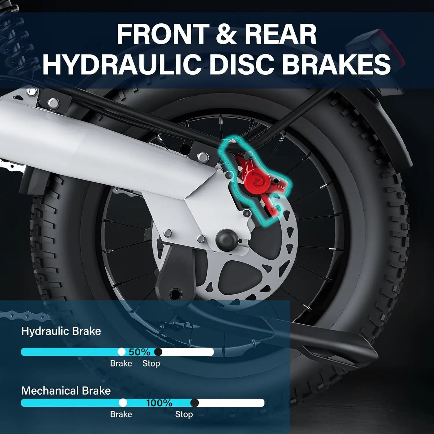 Brakes: Double Piston Oil Brake, Equipped with 180mm Stainless Brake Disc