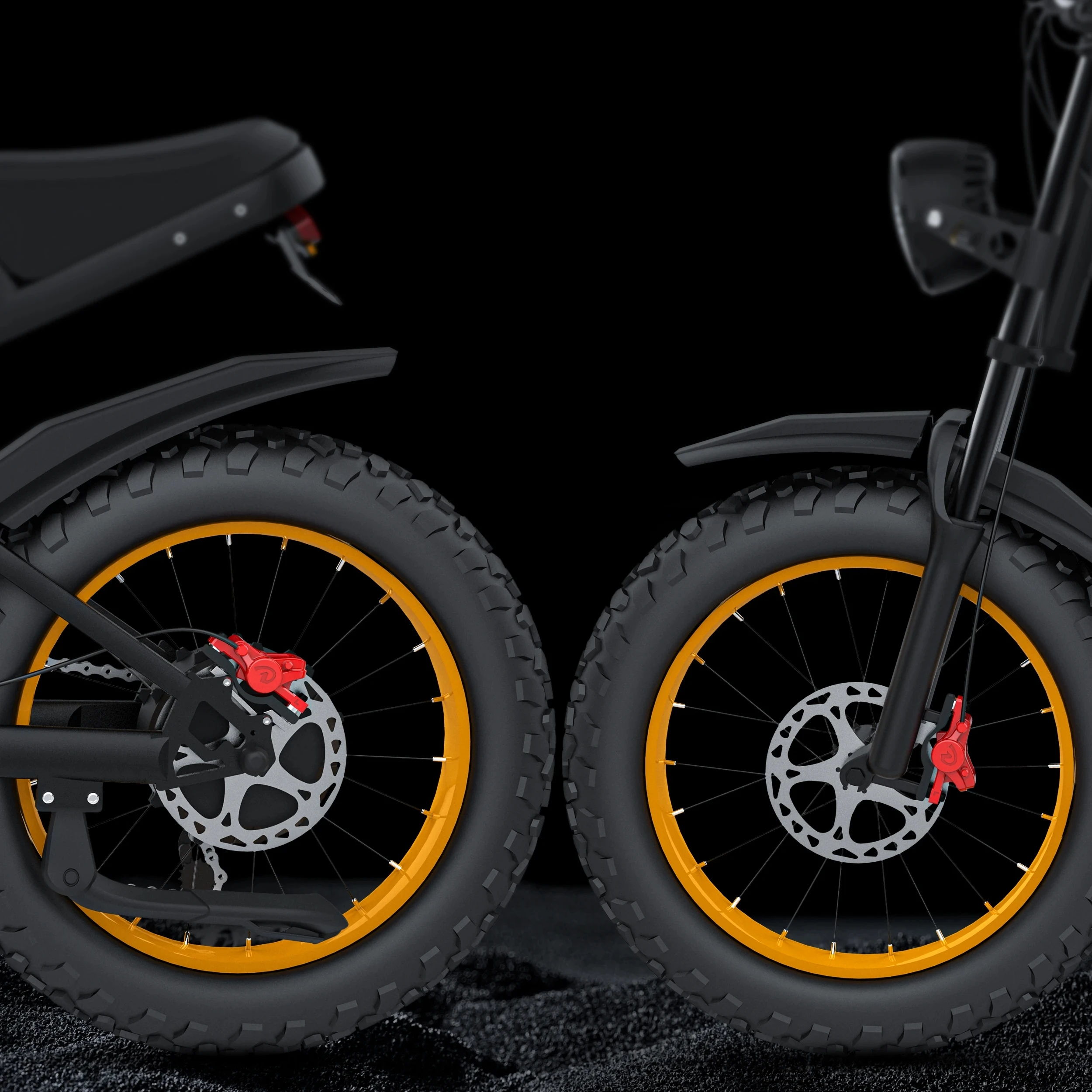 Front and rear double-piston hydraulic oil brakes, equipped with 180MM brake discs ,braking more timely, high-speed emergency braking can also stop in seconds, largerand thicker disc brake disc, braking faster and more stable, longer life, no fear of rain, no failure in case of water,make riding safer.