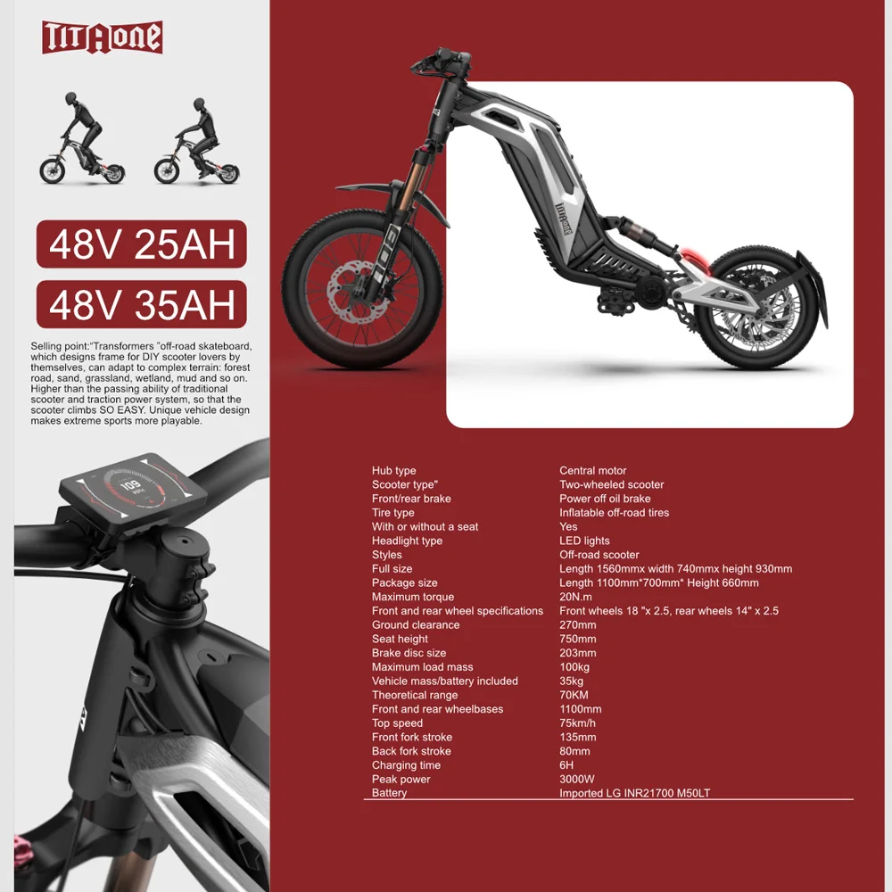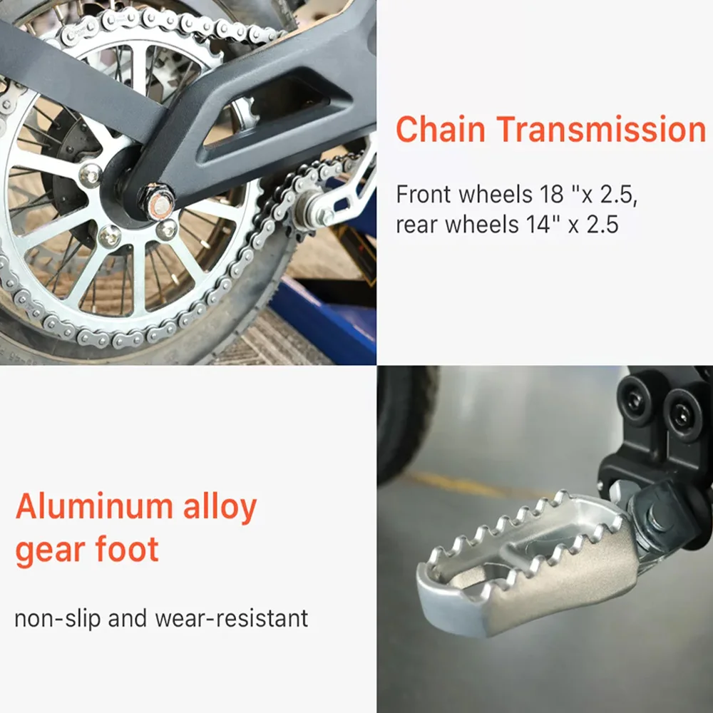 3. Wheel Size : 18inch front off-road tire/14inch rear off-road tire