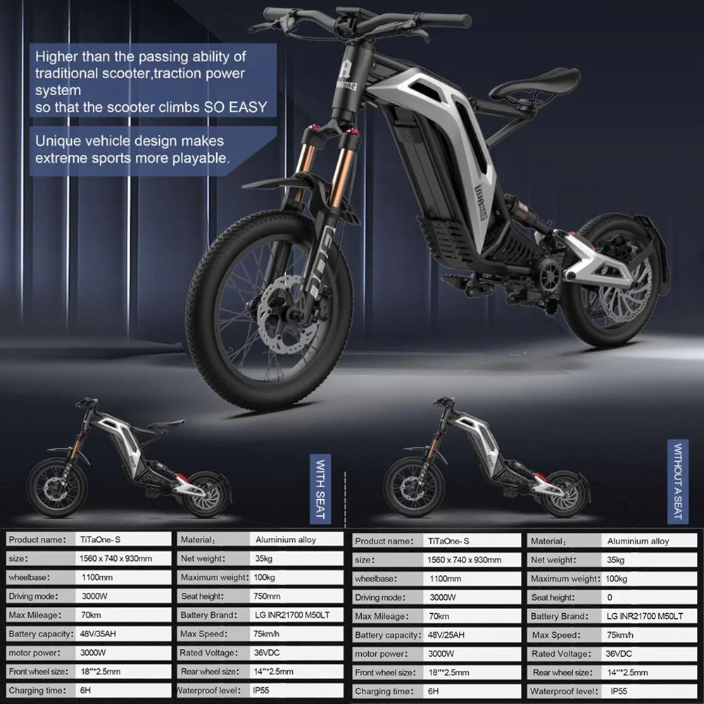 Titaone-S New Fashion Fat Off-road tire 3000W 48V Fast Speed 75km/h Electric Bicycle Scooter
